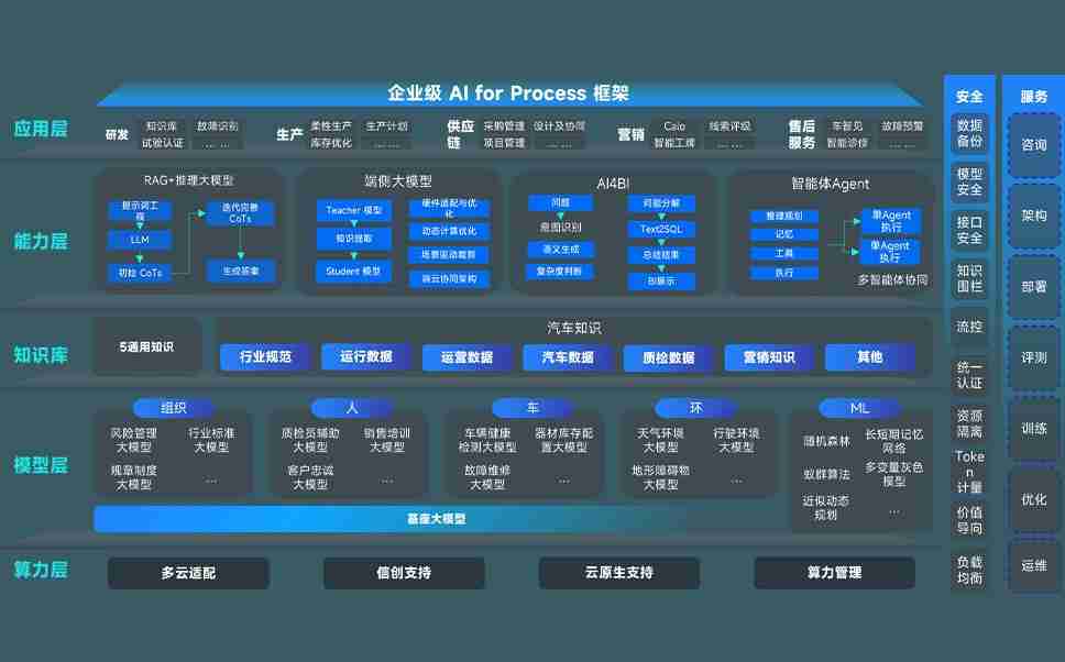 尊龙凯时问学智车解决方案是一套基于AI技术的汽车行业智能化系统,,,,覆盖从底层算力到顶层AI应用的全栈方案。。。方案由算力层、、、、模型层和应用层组成:算力层,,方案支持多种一体机配置,,,,具备云端灵活部署、、、多云适配以及动态优化计算资源的能力;模型层,,,尊龙凯时问学平台版提供了企业级AI应用一站式构建与管理平台,,,支持基于后训练强化技术的汽车企业专属模型的训练、、、评测和运营;应用层,,尊龙凯时问学DeepSeek版提供包括超级员工、、、智能招采、、、智能营销、、、、智能客服、、、、AI for BI等一系列解决方案,,可助力汽车行业实现数字化转型,,,让管理更智能、、、响应更敏捷。。。。